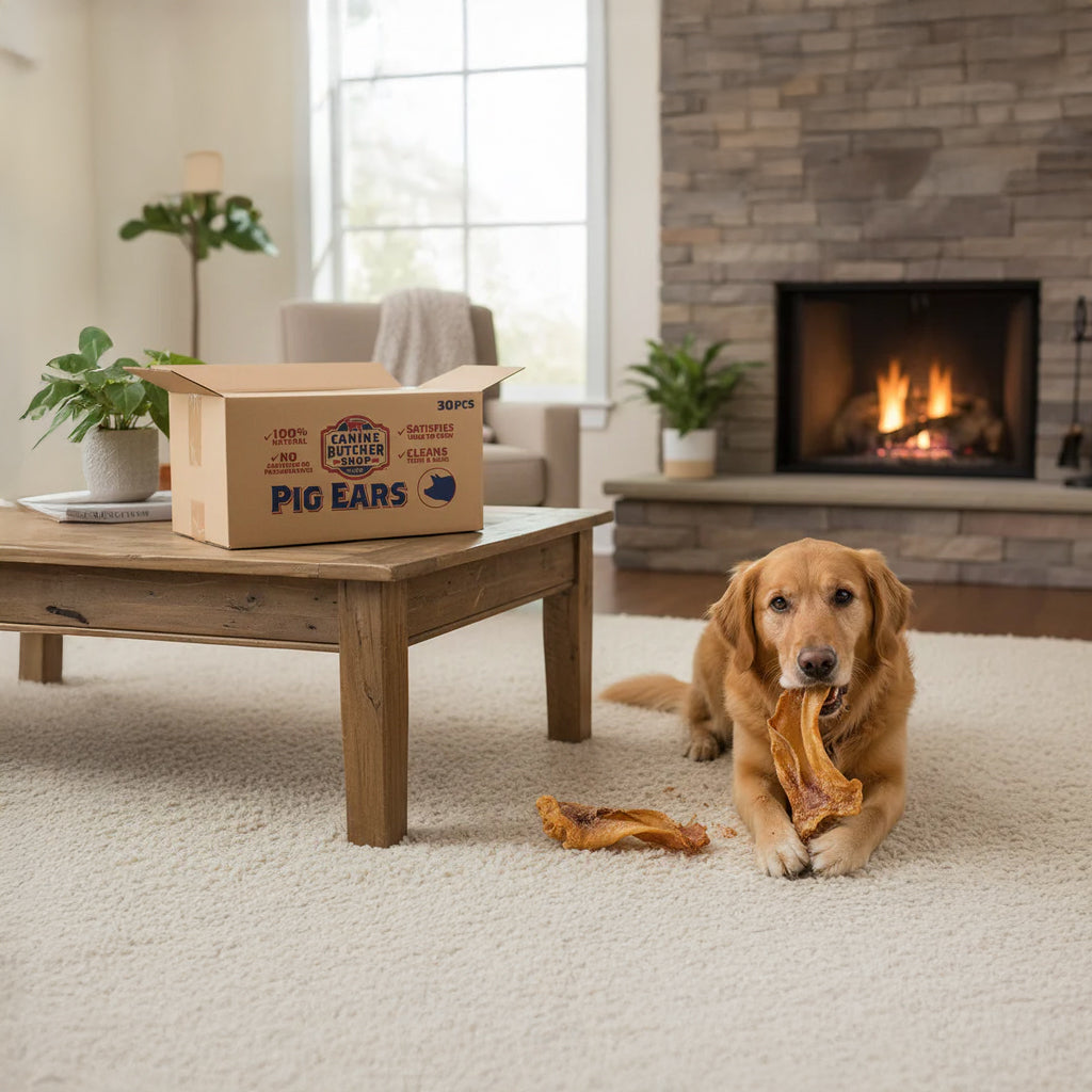 Looking for a safe and wholesome chew that your dog will adore? Give your canine companion the satisfying experience they deserve with Canine Butcher Shop's Jumbo USA Pig Ears. Crafted with care, these single-ingredient treats are made from 100% all-natural, USA-sourced pork ears, ensuring no mystery meat or foreign contaminants. We slow-cook each ear to perfection, then naturally dry them to create a durable yet digestible chew that promotes dental health by reducing plaque and tartar build-up. These large, whole pig ears are perfect for keeping your dog engaged and happy, satisfying their natural urge to chew while providing a long-lasting, flavorful experience they'll crave. With over 20 years of experience, Canine Butcher Shop is dedicated to providing the highest quality, all-American dog chews. Our commitment to quality means zero salt, sugar, flavors, coloring, additives, or preservatives. Each batch is rigorously tested by an independent laboratory for safety and quality, so you can feel confident in every bite. These jumbo pig ears are an ideal way to keep your dog entertained during downtime, provide a rewarding treat after training, or simply offer a healthy way to manage boredom. Invest in a premium, trustworthy chew that prioritizes your dog's well-being and enjoyment. Treat your best friend to the best – add these USA-made pig ears to your cart today and watch them wag with delight!